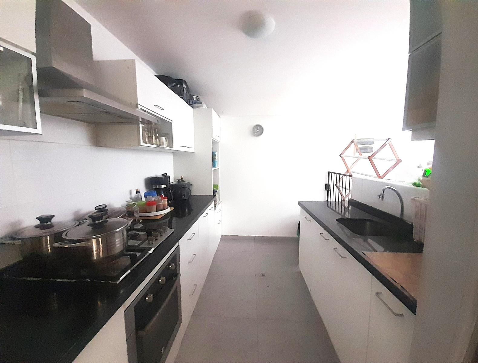 • Cocina cerrada con muebles altos y bajos